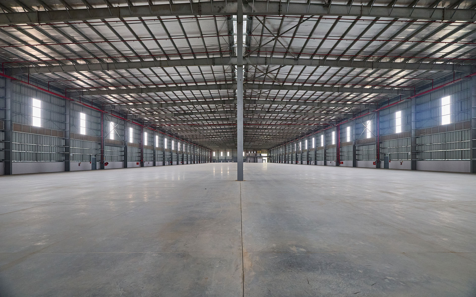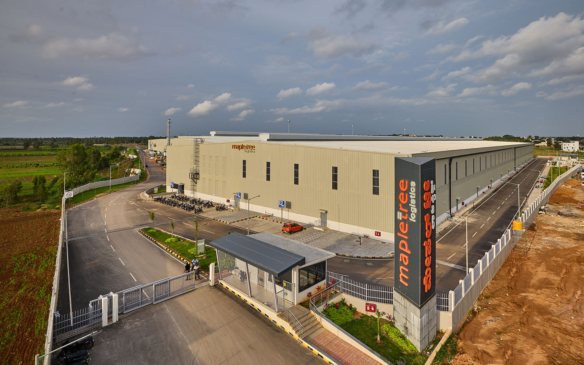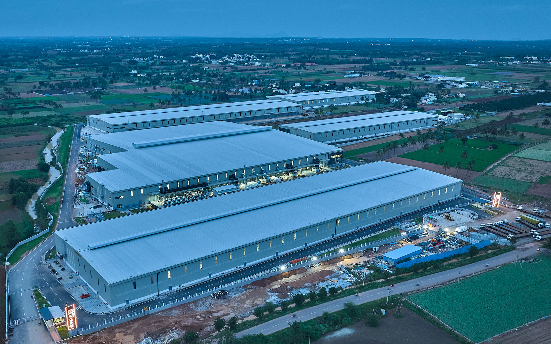 Located in a suburban context along NH648 as a part of rural Bangalore ,the 50acre site is wrapped by a nala on the west and the main access road on the south. A combination of 6 warehouse blocks and an admin block is strategically worked out to maximise the plot coverage while retaining pockets of landscape. A simple steel construction gable shaped roof with a cantilevering canopy for the platform was chosen as a logical and economical solution for the organization of space.